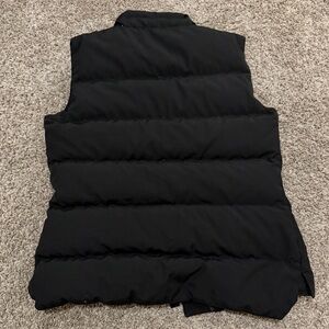 Sleek black quilted vest by Canada Goose. Features iconic logo patch and durable design. Sold as is