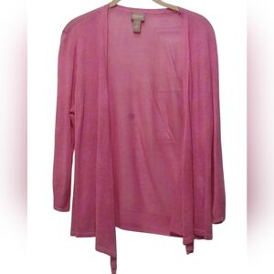Chico's - Pink Cardigan Sweater, Open Front, Long Sleeve, 55% Ramie, 45% Rayon