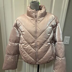 Hudson jeans ladies cropped chevron puffer jacket in rose size large