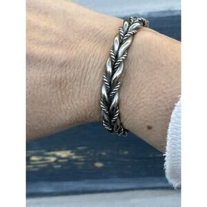 Vintage Twisted Rope Cuff Bracelet Southwestern Style Silver Tone Braided