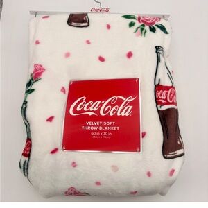 60” x 70” Viral Coca Cola Blanket. Velvety plush soft. Pink roses and coke bottles