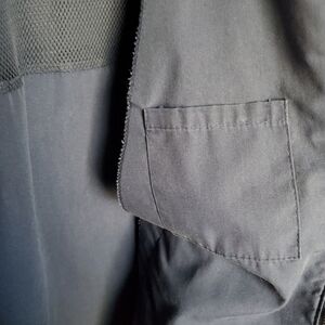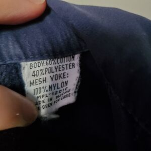 Fabric content: body- 60% cotton, 40% polyester; mesh yoke- 100% nylon