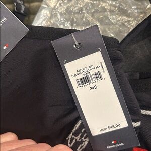Chic and comfortable black bra with signature Tommy Hilfiger branding. Features subtle red accents for a stylish touch.