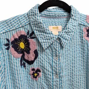 Anthropologie Maeve Embroidered Flower Striped Shirt Button Down