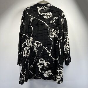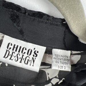 Chicos Design Women's Blouse XL Black Velvet Burnout Sheer Tunic Side Slits