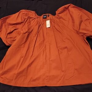 Chic terracotta blouse from GAP. Flowy design with gathered neckline. Ideal for versatile styling.