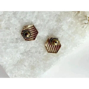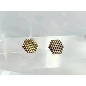 Dainty Tiny Gold Toned Hexagon Shaped Striped Textured Mini Stud Earrings