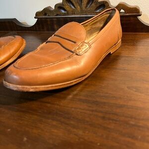 Elegant tan leather loafers by J. Crew. Ideal for versatile styling.