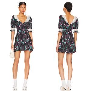 FOR LOVE & LEMONS Raisa Floral Polkadot Lace Trim Collar Mini Dress Sz XS