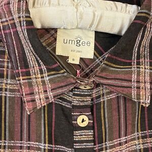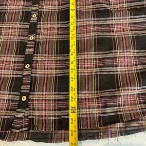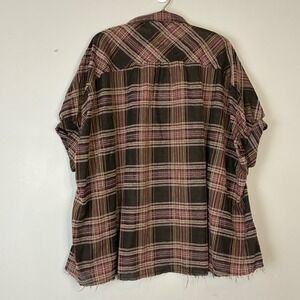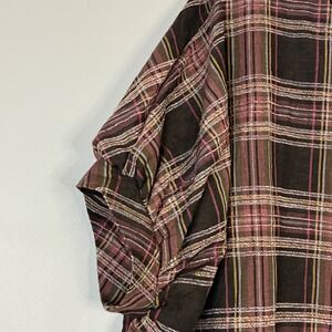 UMGEE Women Plaid Button Up Shirt Oversized Short Sleeve Frayed Hem Size S