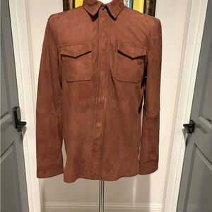 John Varvatos Mens Brown Suede Shirt Jacket