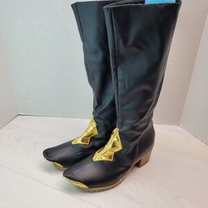 Genshin Impact Alhaitham Cosplay Tall Black Boots Gold Accent Toe Chunky Size 7