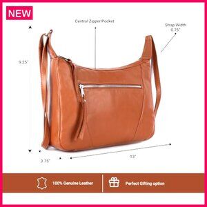 Genuine Leather Hobo Satchel Crossbody Bag Adjustable Strap 13x9 Inches