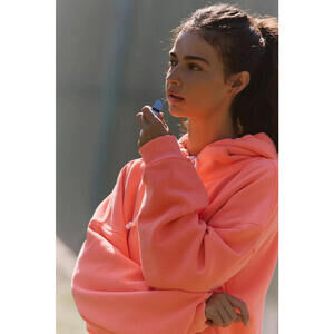 New Free People FP Movement Size S Final Call Hoodie Sweatshirt Neon Coral