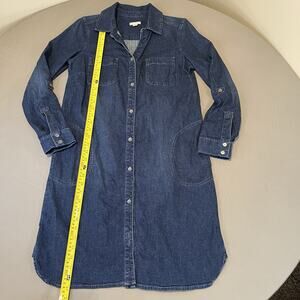 J Jill Denim Shirt Dress Womens Small Blue Button Front Roll Tab Sleeve Stretch