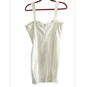 Elegant cream slip dress with bustier top. Ideal for layering or intimate occasions.