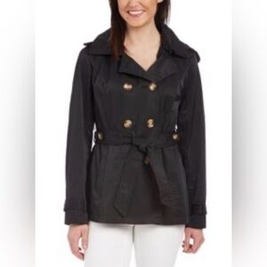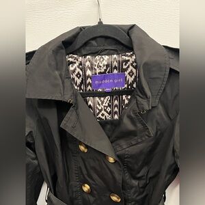 Madden Girl Black Trench Coat with Brown Buttons Medium