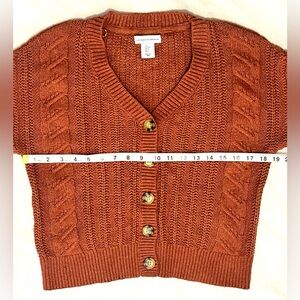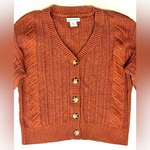 cupcakes & cashmere Burnt Orange Button Up Cotton Blend Cardigan Sz Small