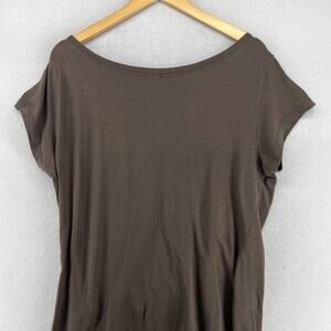 EILEEN FISHER Top L Stretch Jersey Organic Cotton Short Sleeve Brown USA