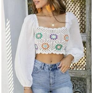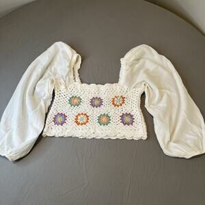 Aerie Women's Crochet Vacay Top Medium Boho Granny Square Festival 70s Hippie