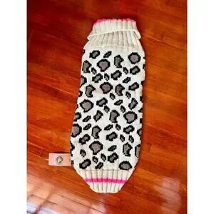 NWT Chilly Dog Cream Brown Leopard Dod Sweater XXL Large Dog Mock Neck Winter