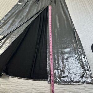 NEW Gianni Bini Zella Metallic Lame Plunging V-Back Front Slit Gown Maxi Dress