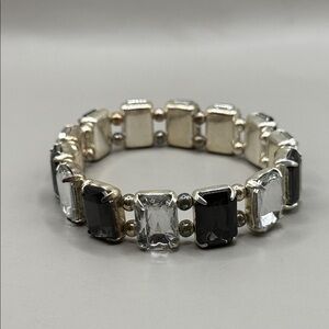 This elegant bracelet features a stunning combination of silver and black stones, perfect for any occasion. Its sleek design adds a touch of sophistication to your outfit. In excellent condition