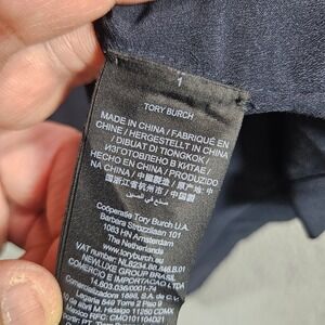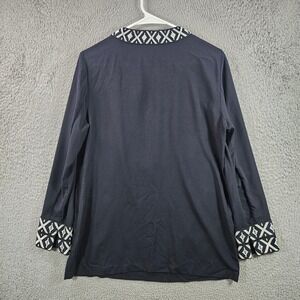 Tory Burch Navy Blue Geometric Embroidered Tunic Top Size 10 Polyester