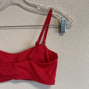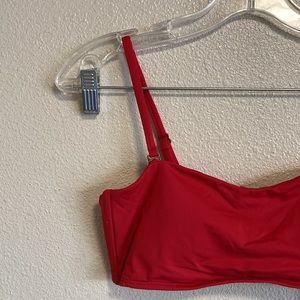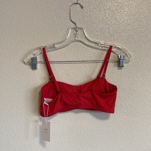 Convertible bikini top by Andie, designed with adjustable and removable straps. The shell is made from 82% recycled nylon and 18% spandex, and the lining is made from 90% nylon and 10% spandex.