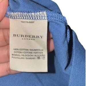 Keywords: Burberry Polo, Mens Designer Shirt, Classic Fit, Heritage Check, Long Sleeve Top, Smart Casual, Luxury Apparel, Button Up, Wardrobe Staple, Blue Polo, Business Casual