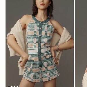ANTHROPOLOGIE Maeve Sleeveless Button-Front Knit Romper Large NWT