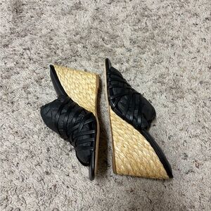 PAIGE Skyler espadrille wedge sandals in size 8, new in box. Raffia wedge with black leather. Strappy, slip on style. 3.5” heel height. Retail $298. Offers welcome!