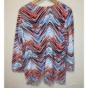Alfred Dunner Boho Zig Zag Multicolor Fringe Long Sleeve Women's Blouse Large