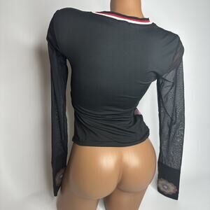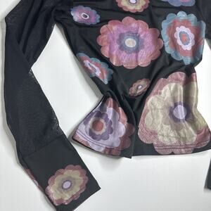 Vintage Y2K Kaily Womens Small Floral Mesh Long Sleeve Top Mod Print Grunge