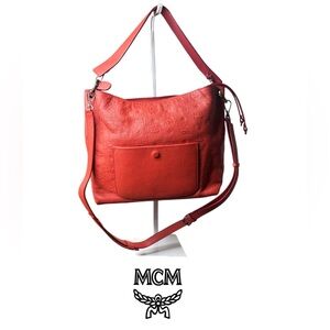 MCM KLARA HOBO EMBOSSED Red Leather Women's Shoulder bag w/ crossbody strap