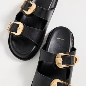 A comfortable classic with an eye-catching twist, these ANINE BING two-strap slide sandals feature a contoured footbed and gold-tone, western-style buckles at the