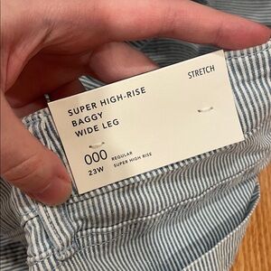 NWT AE blue and white striped wide leg jeans
