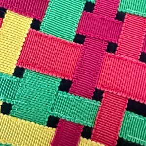 Vintage, 90s, linen skirt, woven design, ribbons, geometric, preppy, Avant garde, art to wear, art teacher, academia, party, event, maximalism, dopamine fashion, fashion as art, colorful, retro