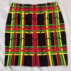 Vintage CARLISLE Colorful Multicolor Linen Ribbon Plaid Women's Pencil Skirt