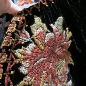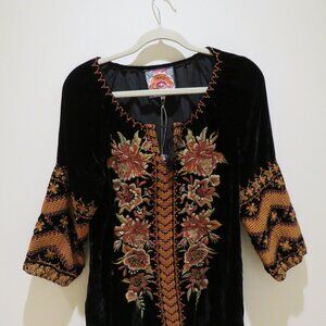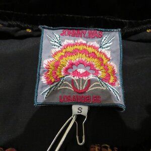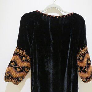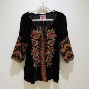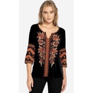 JOHNNY WAS Elim Velvet Peasant Blouse in Black Floral Embroidered - Women's Size Small