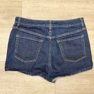 Chic dark blue jean shorts. Perfect for casual wear. Features classic design.