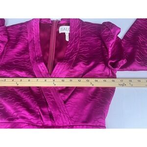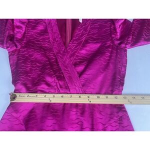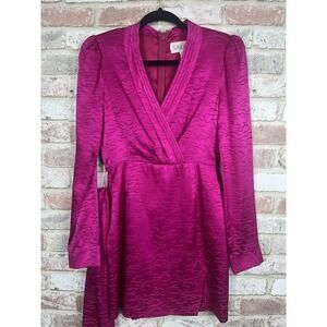 Saloni Bibi Mini Dress Vivid Magenta Silk Long-Sleeve Sz 0