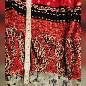 Embrace a bohemian vibe with this stunning red and black skirt. Perfect for any occasion, this skirt offers a unique and stylish look.