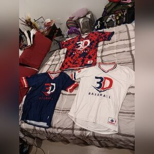 Show your team spirit with the Men's Jersey Trio. Featuring bold red, deep blue, and clean white colors, these jerseys are perfect for any baseball enthusiast.