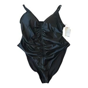 GOOD AMERICAN Always Ruched One Piece Black Classic Swimsuit Size 3XL