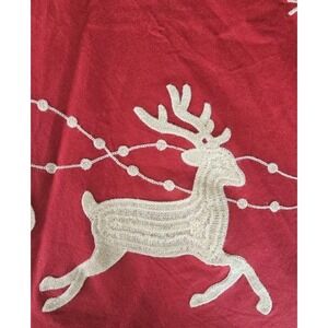 Traditional Red Christmas Tree Skirt Santa Sleigh Reindeer Embroidered Used Once