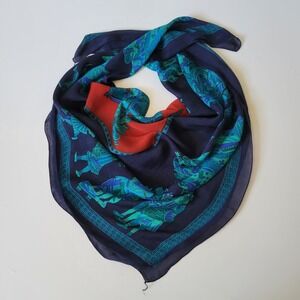 Vintage Silk Chiffon Square Scarf Indian Motif Boho Chic Elevated Sophisticated