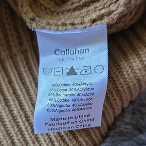 Callahan Tan Cardigan Sweater V-Neck Ribbed Button Cable Fisherman Large