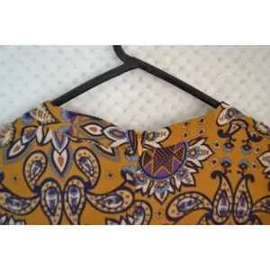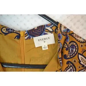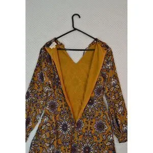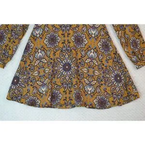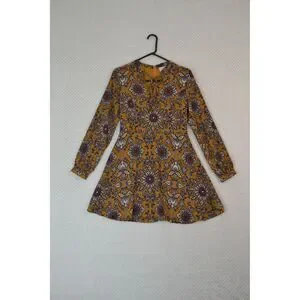 Everly Anthro Women's Small Gold Fit & Flare Long Sleeve Paisley Print Dress