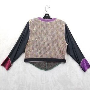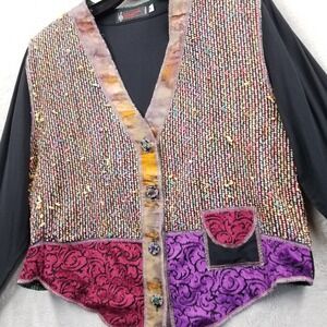 Vintage Jacket Women M Patchwork Colorful Chenille Velvet Art to Wear Hippie